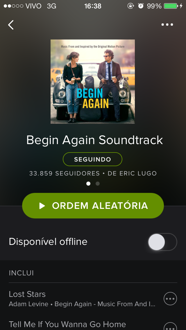 Begin Again (Mesmo se nada der certo). O filme tem músicas bem gostosas, entre elas a famosinha do momento – Lost Stars, com versão na voz do Adam Levine e também na da Keira Knightley.
